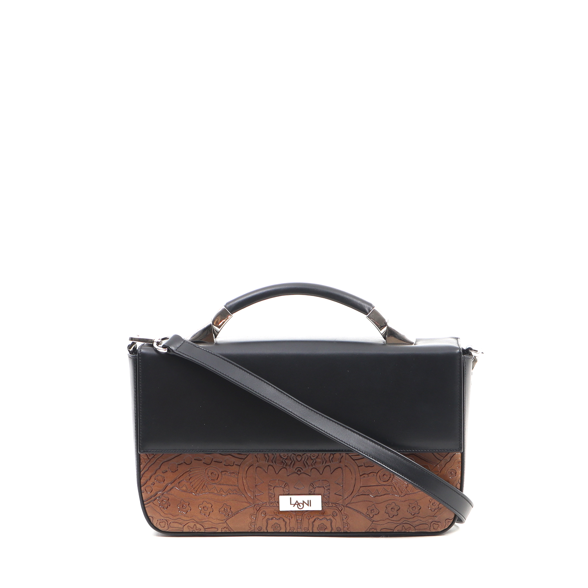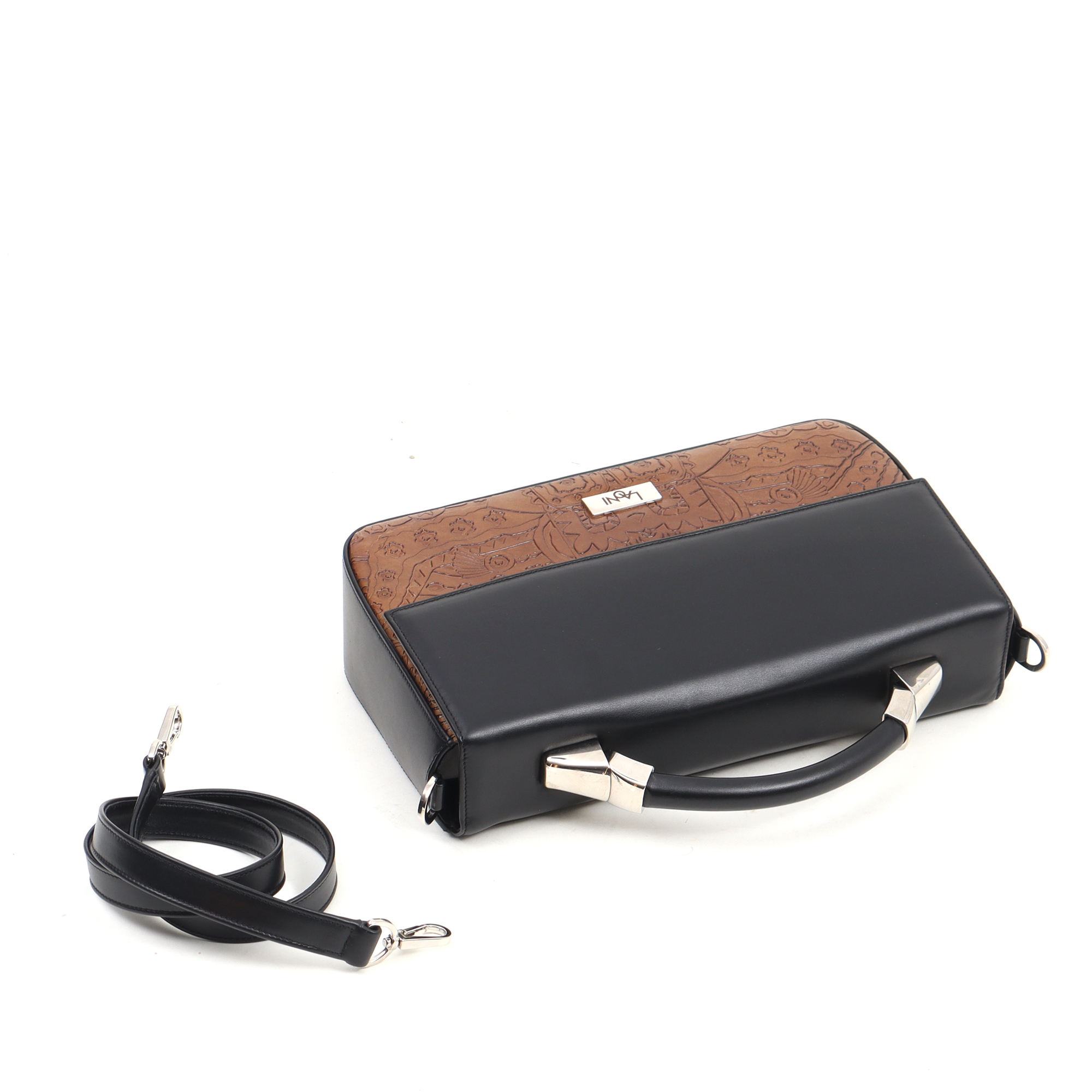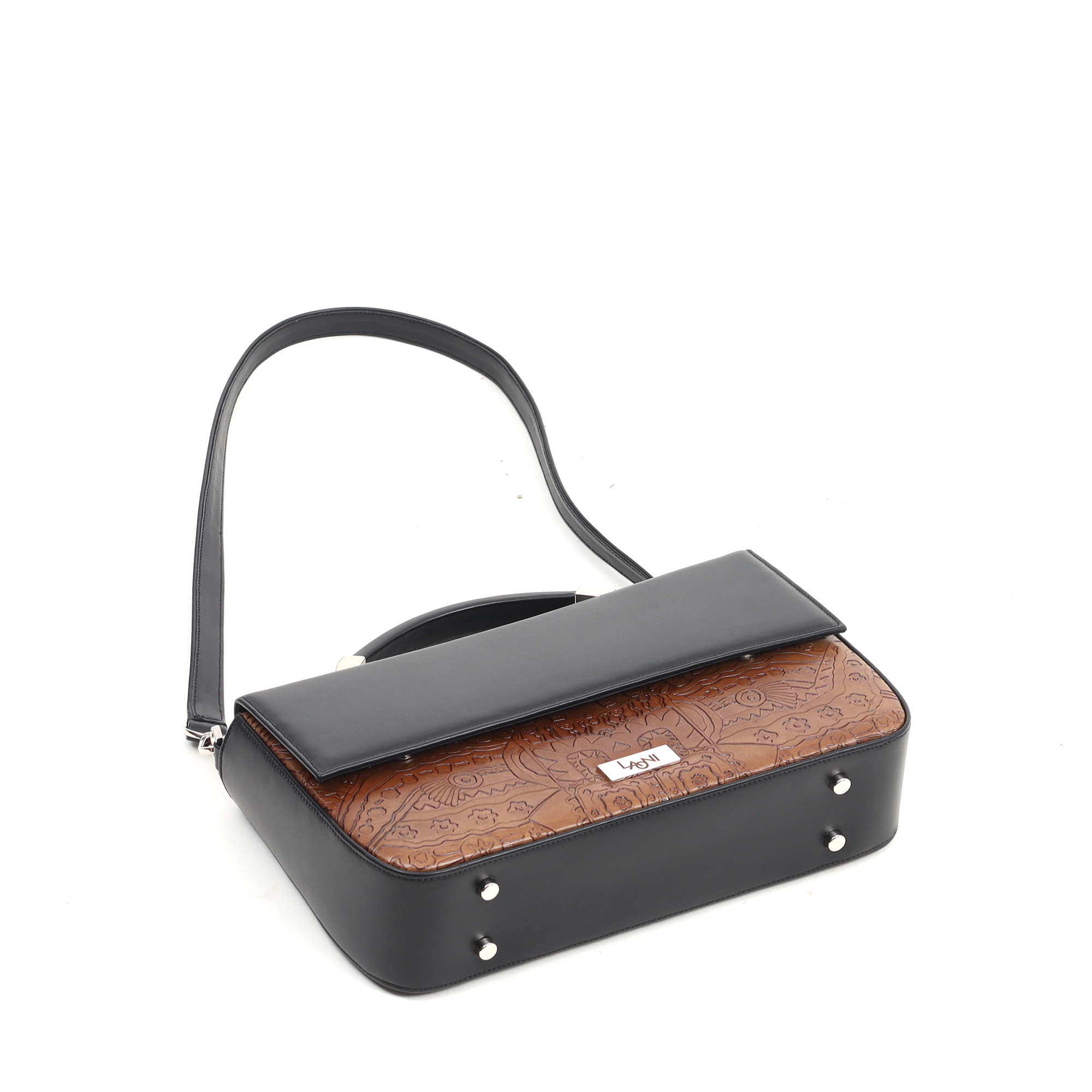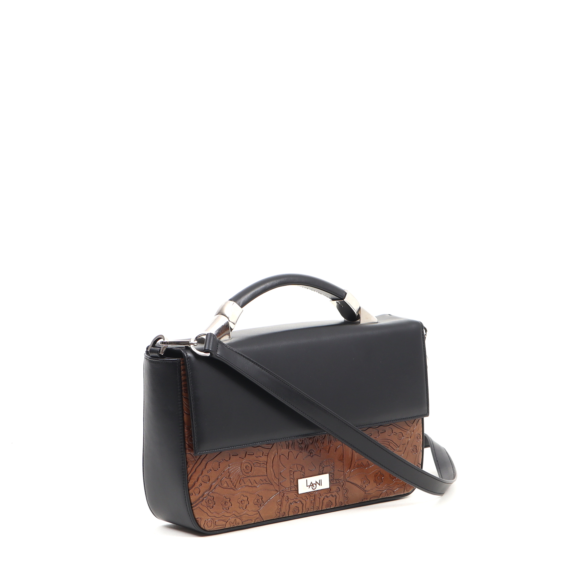 Color: black and haselnut brown embossed pattern