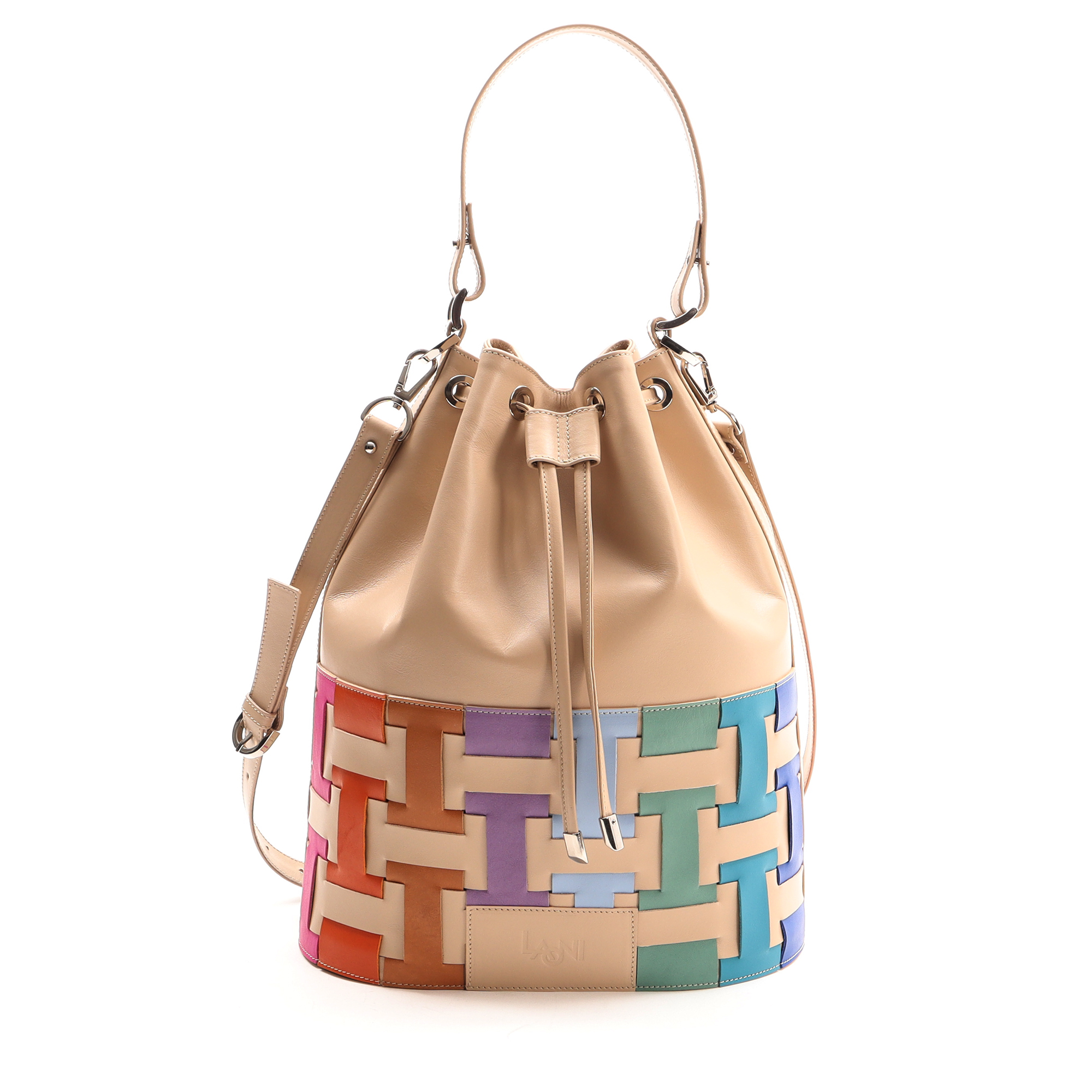 The top handle and shoulder strap are adjustable in length and removable.