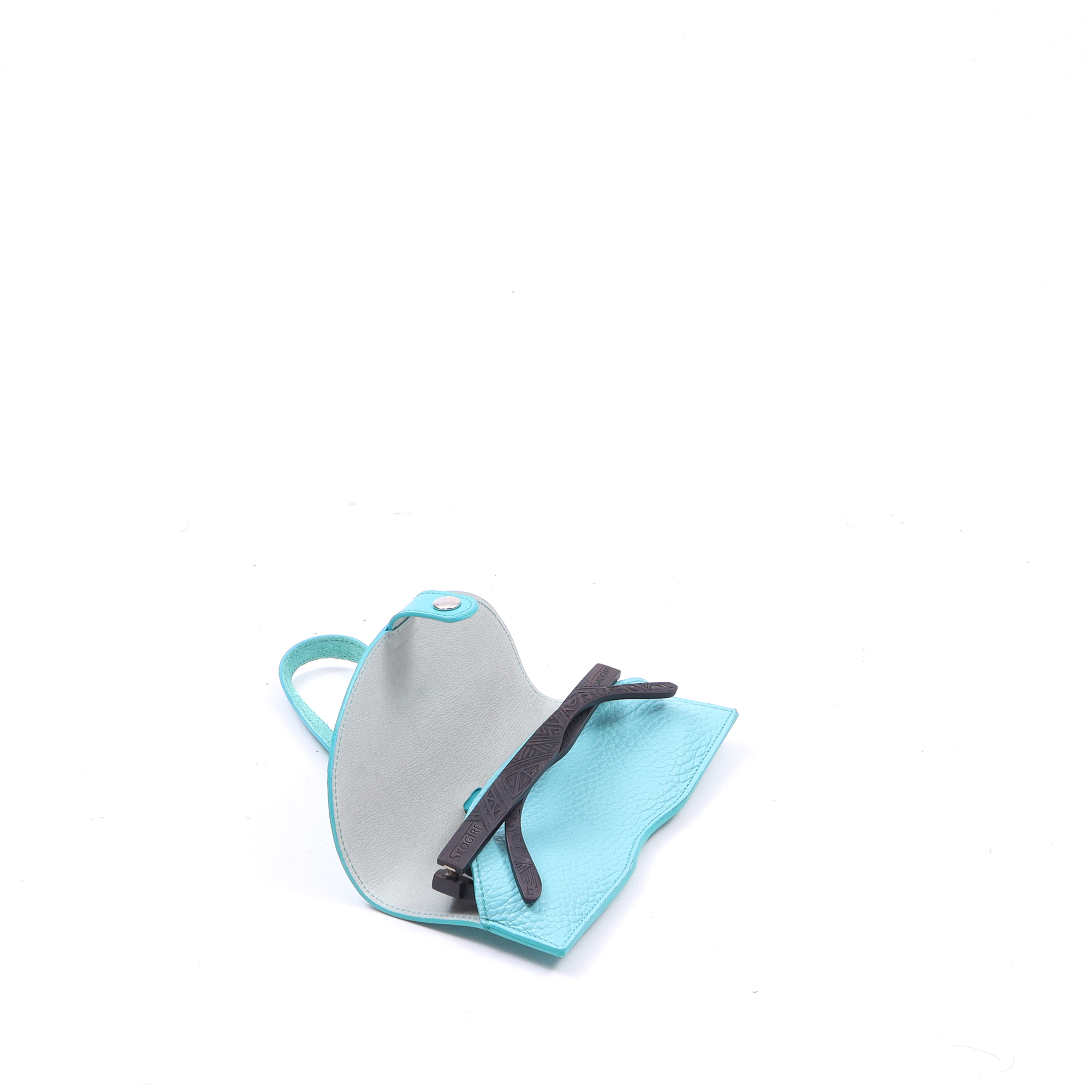 Practical glasses case that even fit your sunglasses. With its detachable carabiner strap, you can easily attach it to the outside of any bag. And if you want to put it inside your bag, you can easily remove the strap. The inside of the case is lined with fine leather to protect the lens of your glasses.